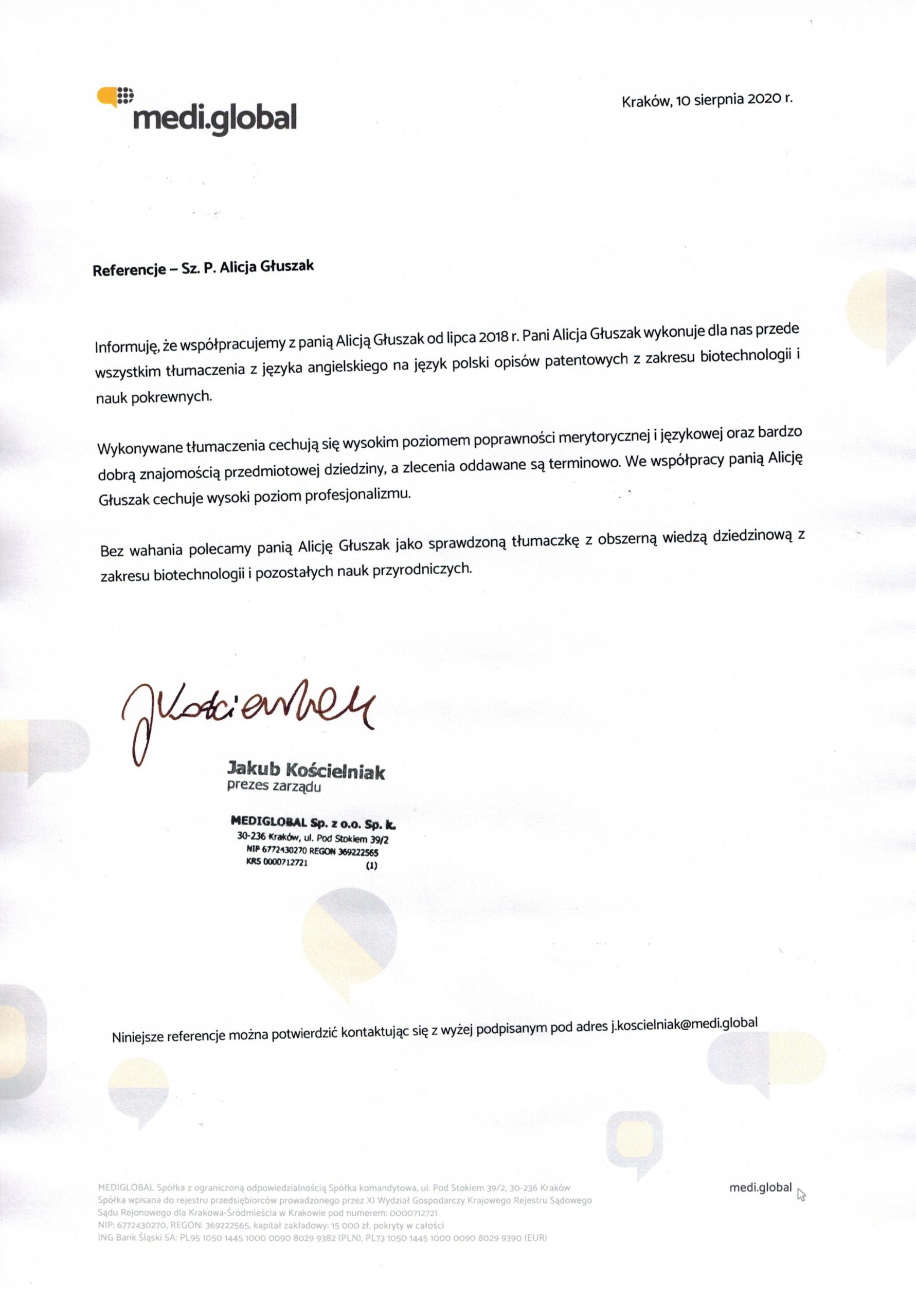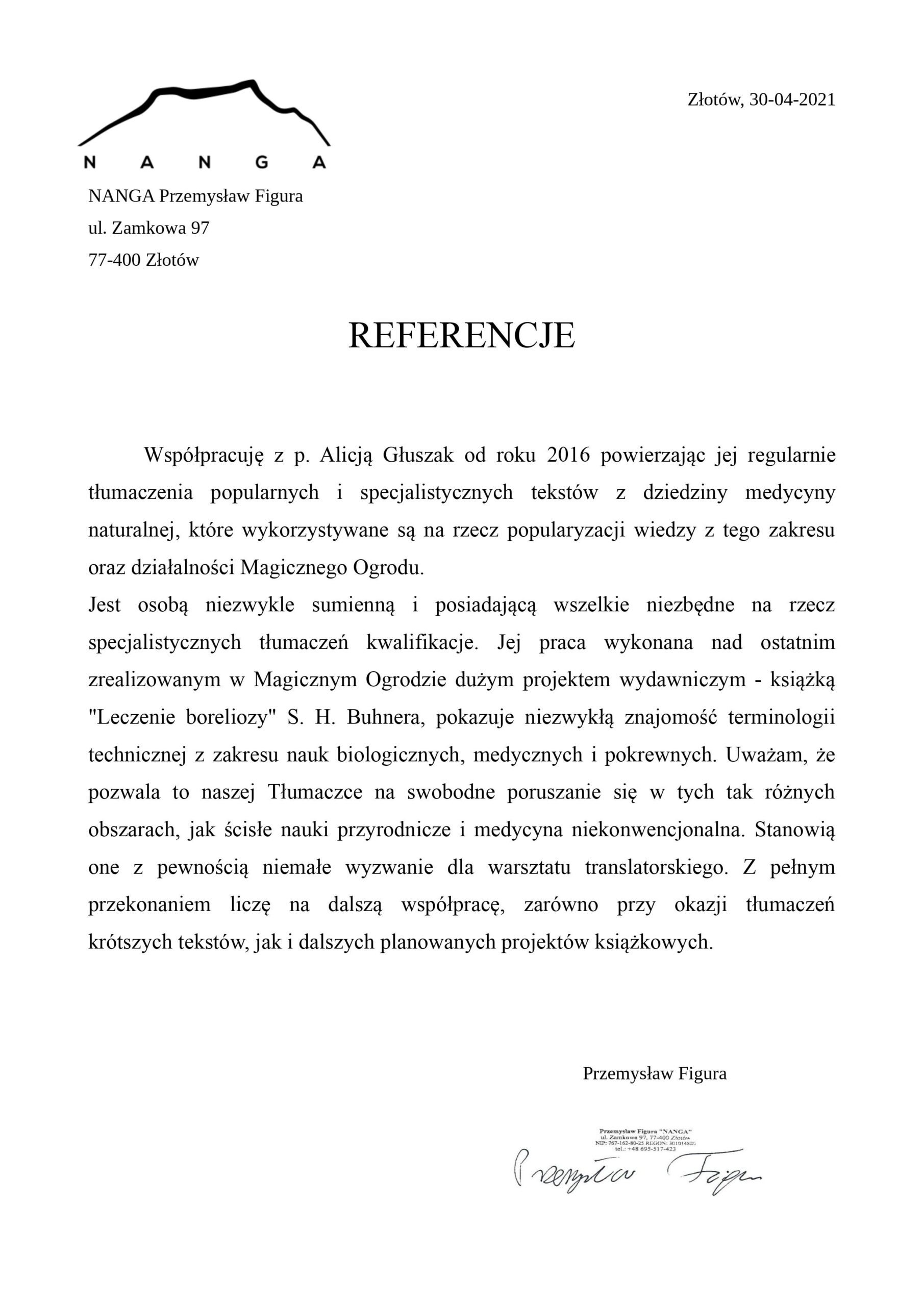 ...Otóż jestem bardzo zadowolony z Pani tłumaczenia i pracy. Widać, że włożyła Pani w to dużo pracy i skupienia, i jedyne fragmenty, które musiałem przepisać to były te, które (jak sama Pani zauważyła w tłumaczeniu) nie były optymalnie napisane przeze mnie. Samemu dużo nauczyłem się czytając tłumaczenie, także bardzo dziękuję i na pewno chętnie skorzystam z Pani usług (a także polecę Panią innym osobom)...